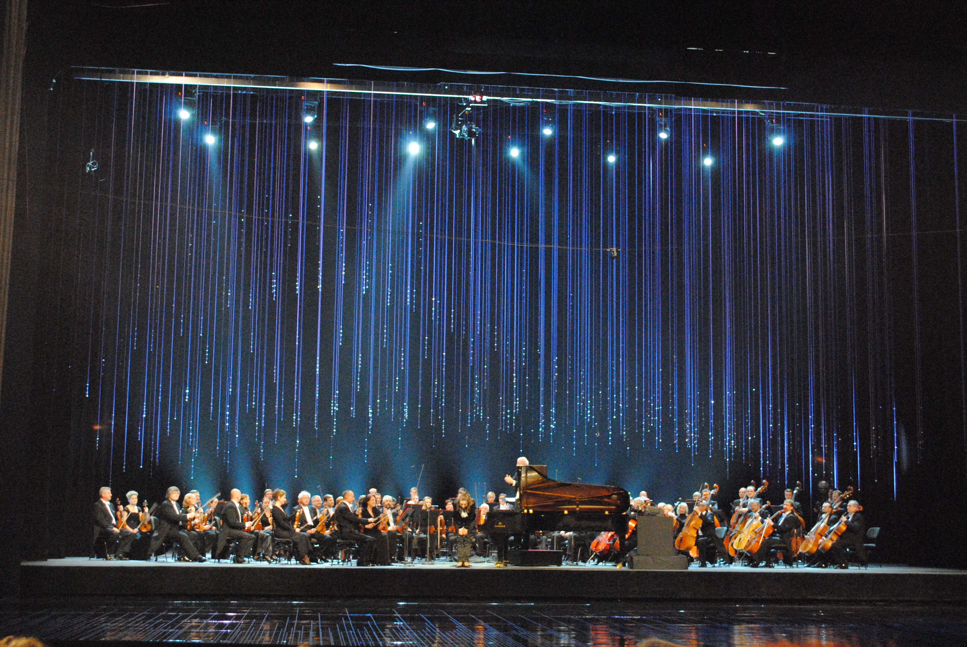 Television and camera crews took over the best angled spots of the Philharmonic, including right in front of the stage.