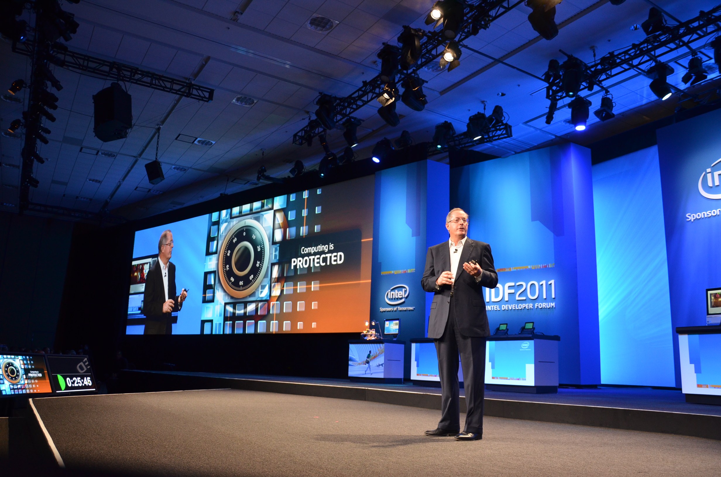 Paul Otellini, President & CEO of Intel Corporation addresses the IDF2011 conference in San Francisco at Moscone West.