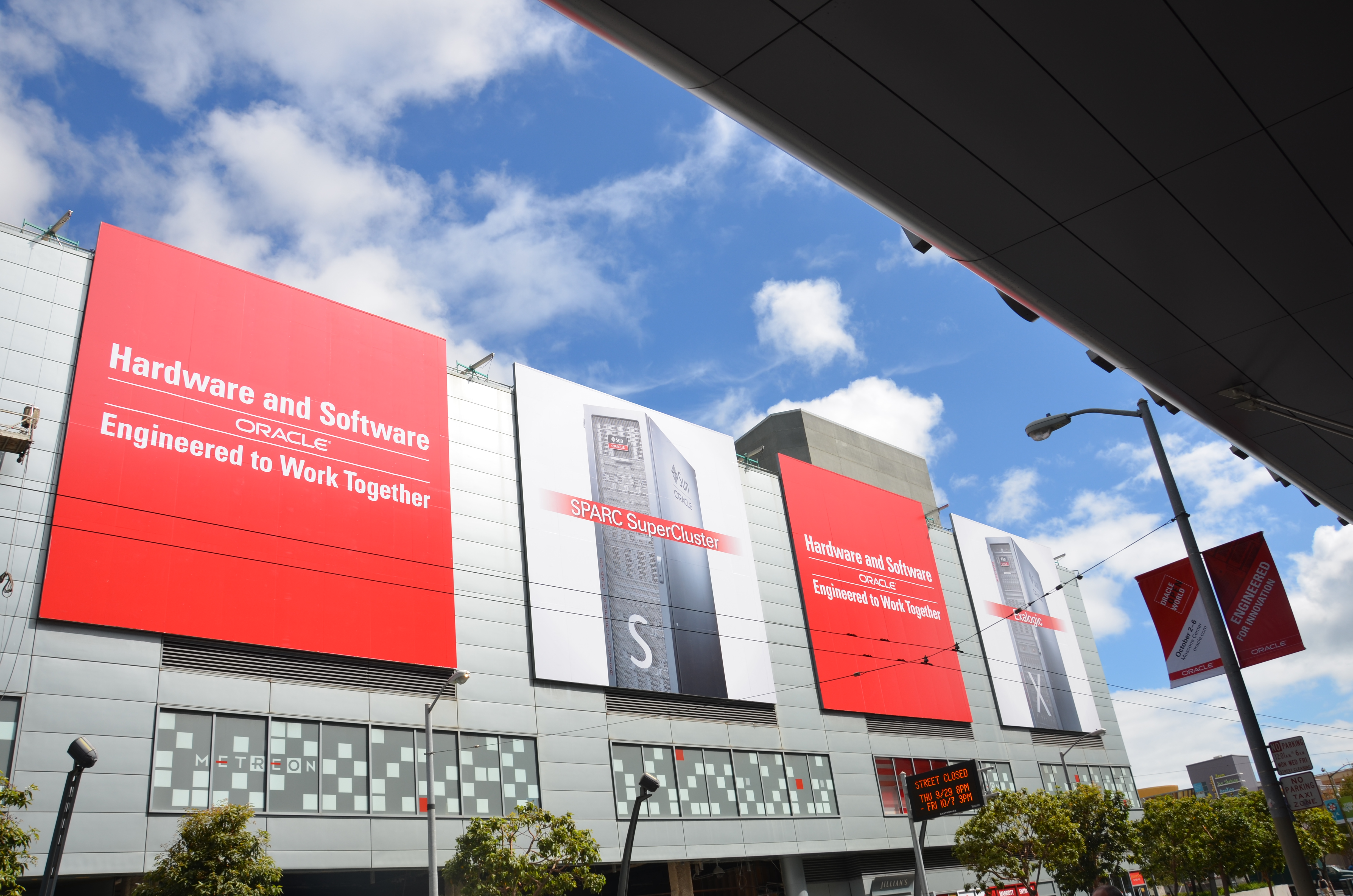Just like the World Championship San Francisco Giants’ proudly display banners of their All-Stars at AT&T Park, Oracle has done the same this year by putting their super products, “Exadata” and “Exalogic”, and now their latest, the “SPARC SuperCluster”, on busses, billboards and banners that adorn the Moscone Center and are decorated throughout the city.