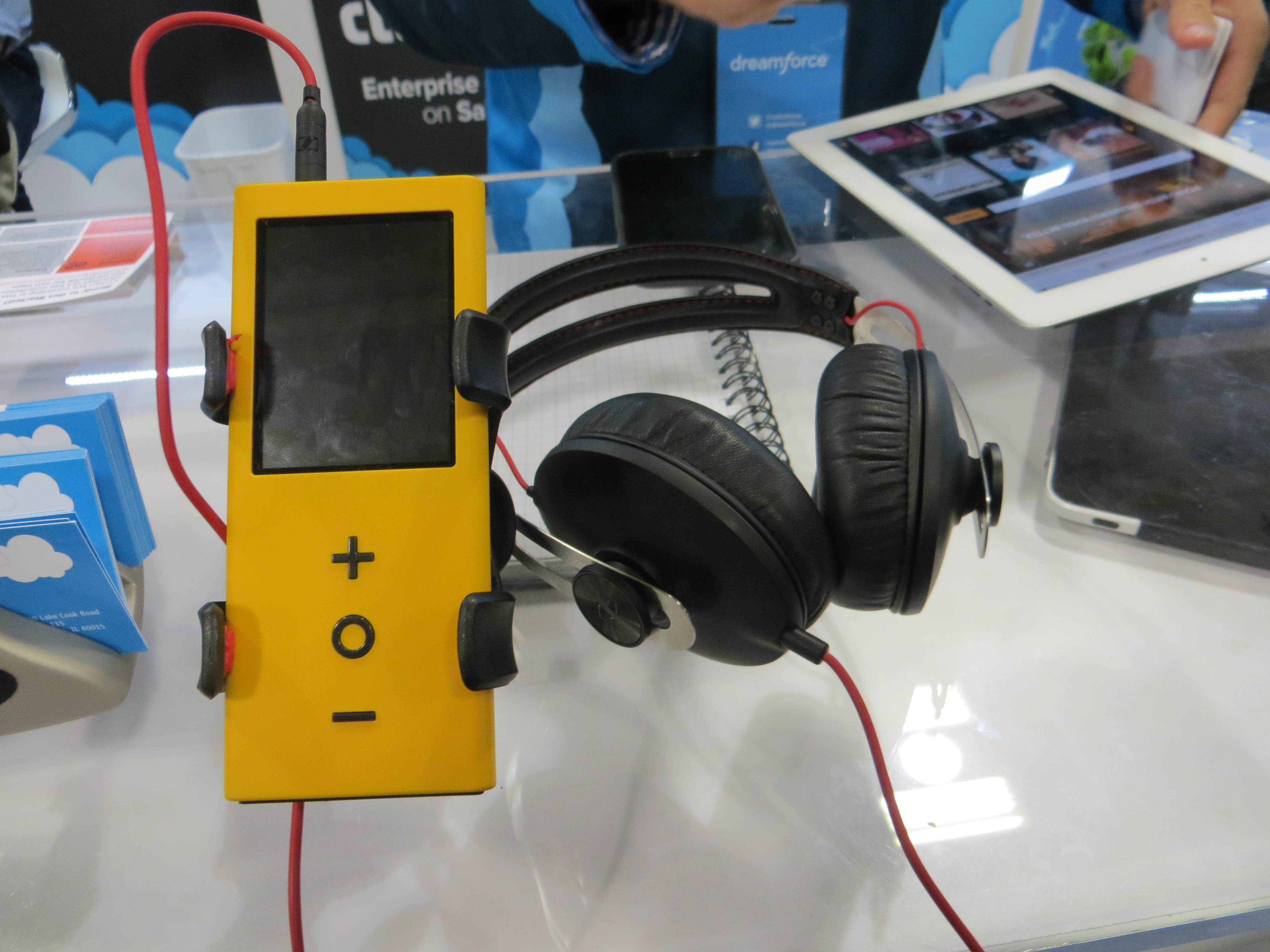The PonoPlayer is shaped like a triangular Toblerone bar, so it’s easy to place on a flat surface. It has two headphone jacks which would be perfect for airplane flights with a companion. It contains 64 gigs of internal memory and ships with a 64 gig micro SD card. The battery life is about 8 hours. The touchscreen is about 2.5 inches. It plays mp3’s, as well as the high resolution files. It retails for $399 and is available in the first quarter next year.