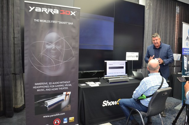 Perry Teevens, CEO at Comhear, demonstrates the Yarra 3DX, the world’s most advanced 3D audio platform at the ShowStoppers Show in San Francisco. Photo by Marcus Siu.