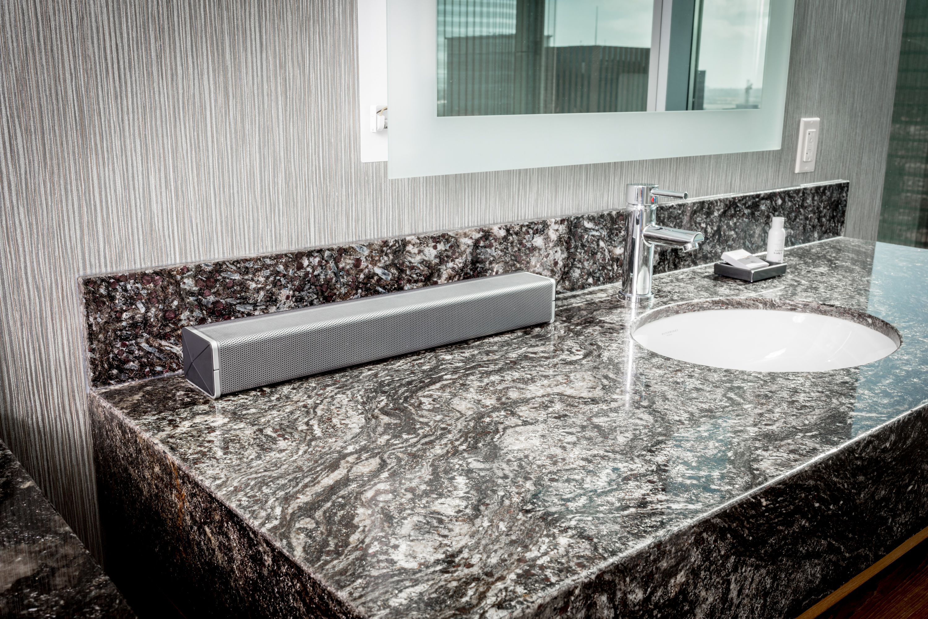 When the musical demo came on, the opening bars of Aerosmith’s “Sweet Emotion” started to play and just hearing the opening chords with the bass lines gave me the chills. Not just because it my favorite song, but because I never heard it in the way it was coming from the soundbar. It was amazing to hear all the spatial separation of the soundscape between the bass, guitars and drums, since all of the instruments seemed to be surrounding me from different areas around the entire room, giving it unbelievable realism via high resolution audio. It was uncanny how there was so much atmosphere coming from such an unassuming sound bar.