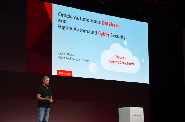 Larry Ellison introduces the Oracle Autonomous Database at the Oracle OpenWorld opening Keynote. Photo by Marcus Siu