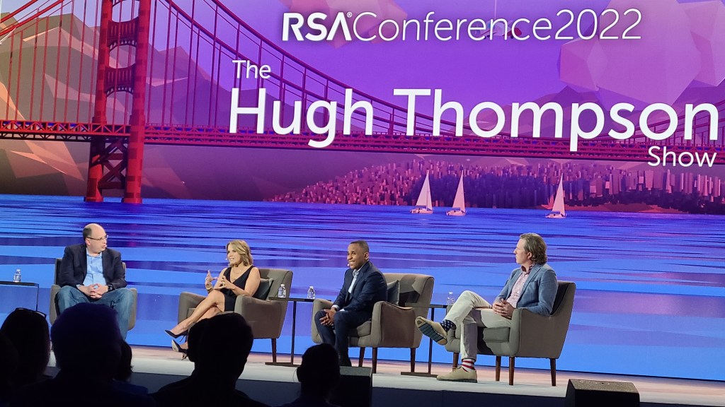 Award-winning journalist, Katie Couric, best known as the longtime cohost of NBC’s Today show for fifteen years and as the first solo female anchor of a major network (CBS) evening news program. Also on hand were the other two co-chairs from the Aspen Institute’s Commission on Information Disorder, Cybersecurity expert, Chris Krebs and Civil Rights Activist, Rashad Robinson. They took the stage at the Hugh Thompson Show at the 2022 RSA Conference at the Moscone Center in San Francisco.