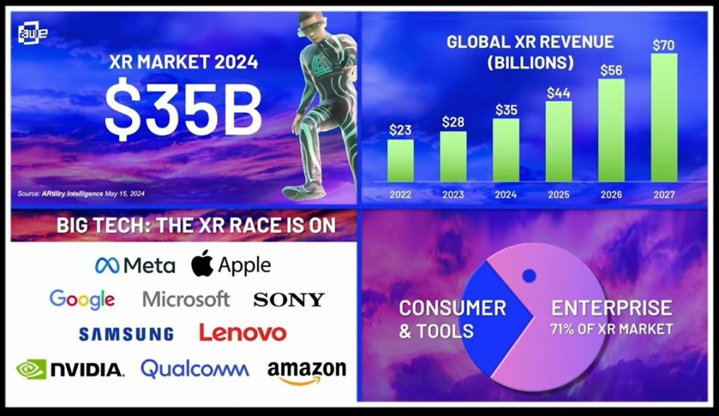 According to ARtillery Intelligence, a research and analyst firm for the business of spatial computing, the XRP market today this year is a $35 billion market. In 2027, it’s expected to double to $70 billion. “It’s becoming a giant industry and it’s crushing it and it’s growing exponentially. After AI, it’s the fastest growing tech sector.” says Inbar.